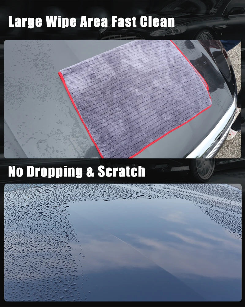 Sa texture dense à double face et ses bords renforcés garantissent une durabilité exceptionnelle, un séchage rapide, et un fini miroir sur la carrosserie, les vitres et les plastiques.
