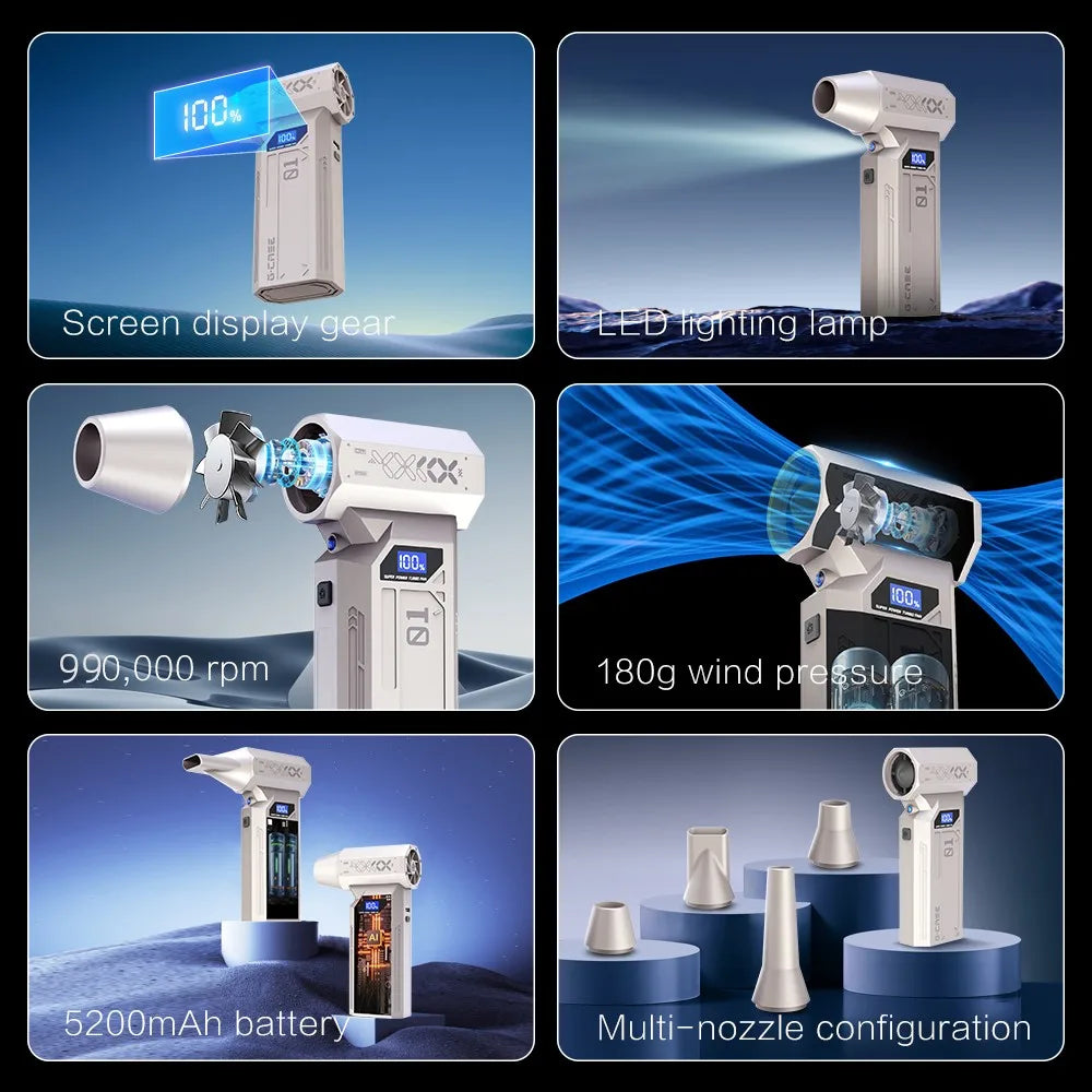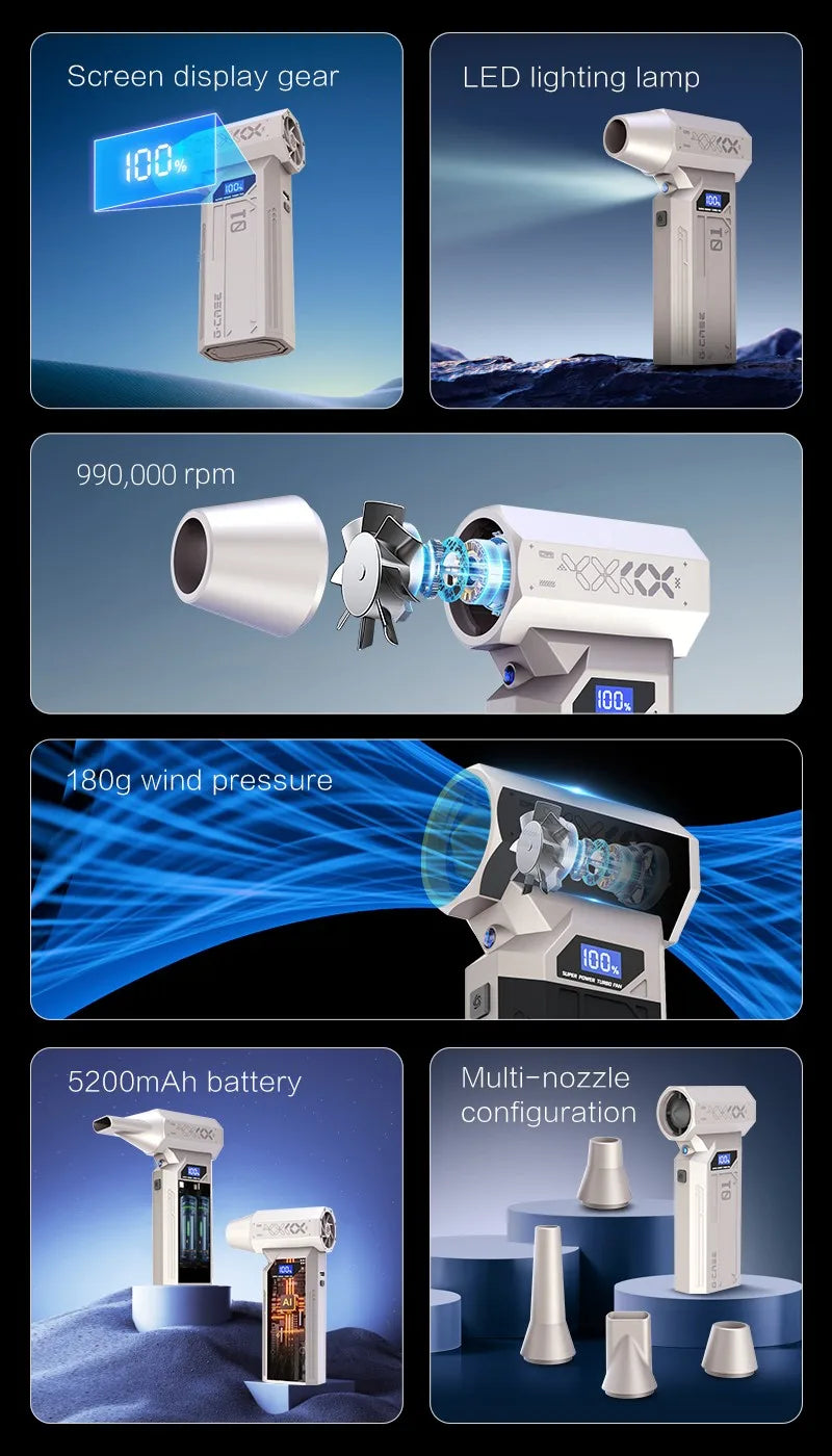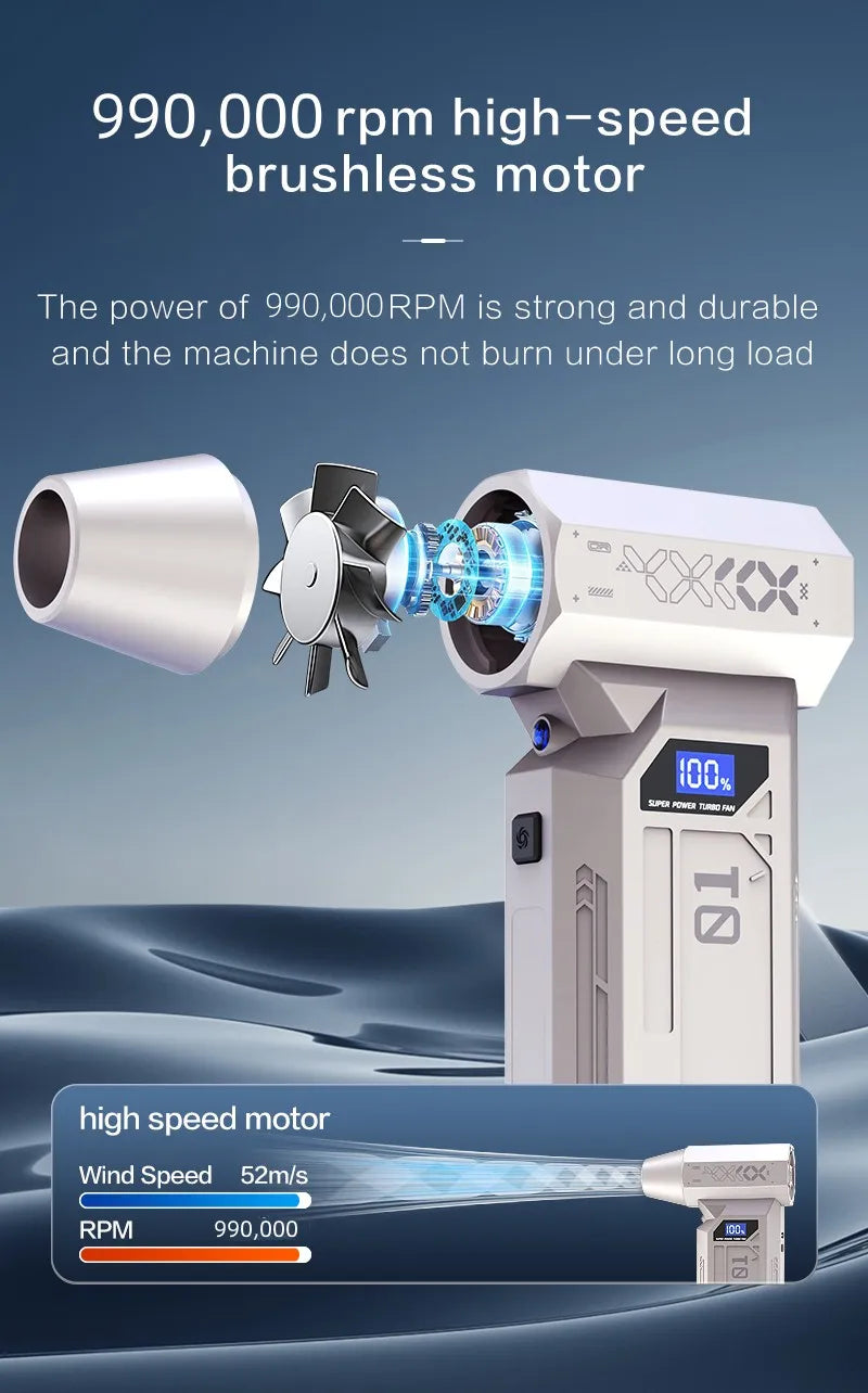 Souffleur d’Air Puissant 990000RPM – Turbo Jet Brushless Haute Vitesse, Sans Fil, Compact et Rechargeable Type-C