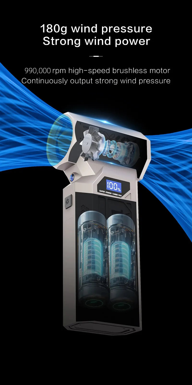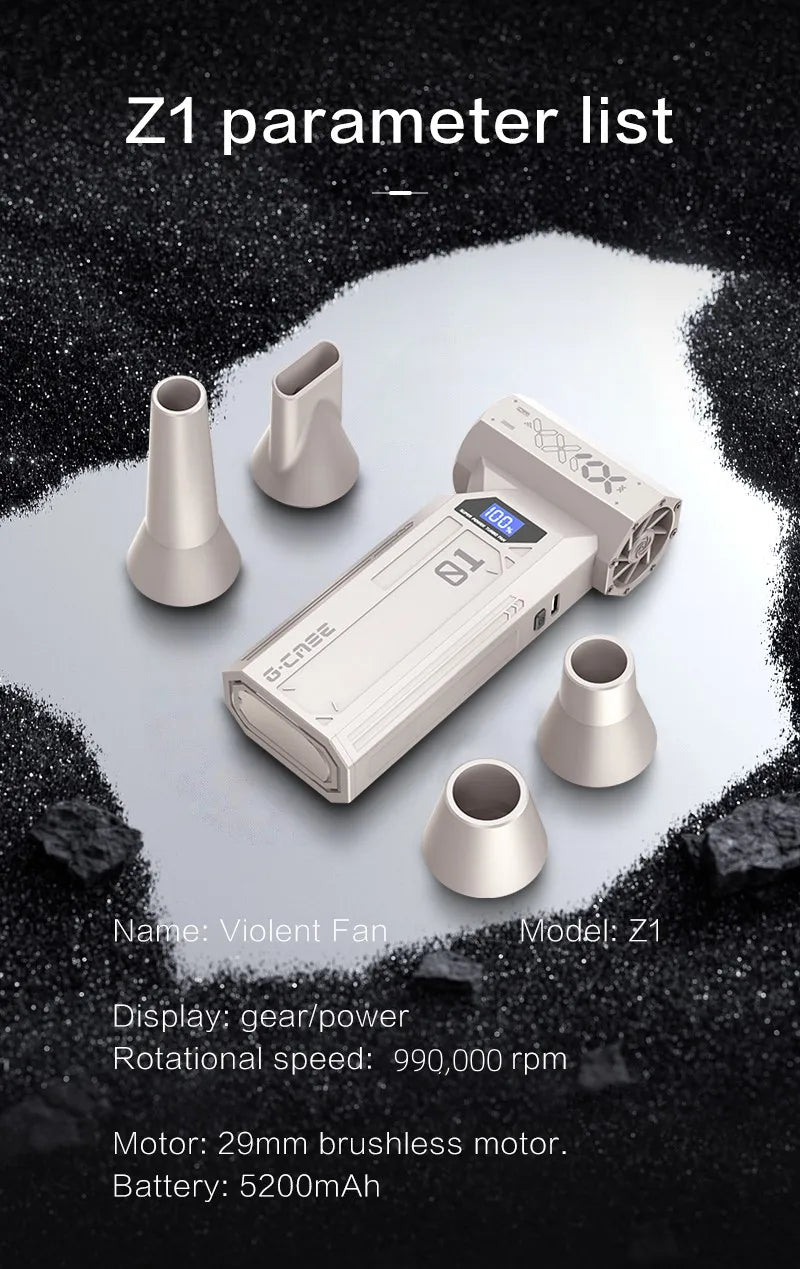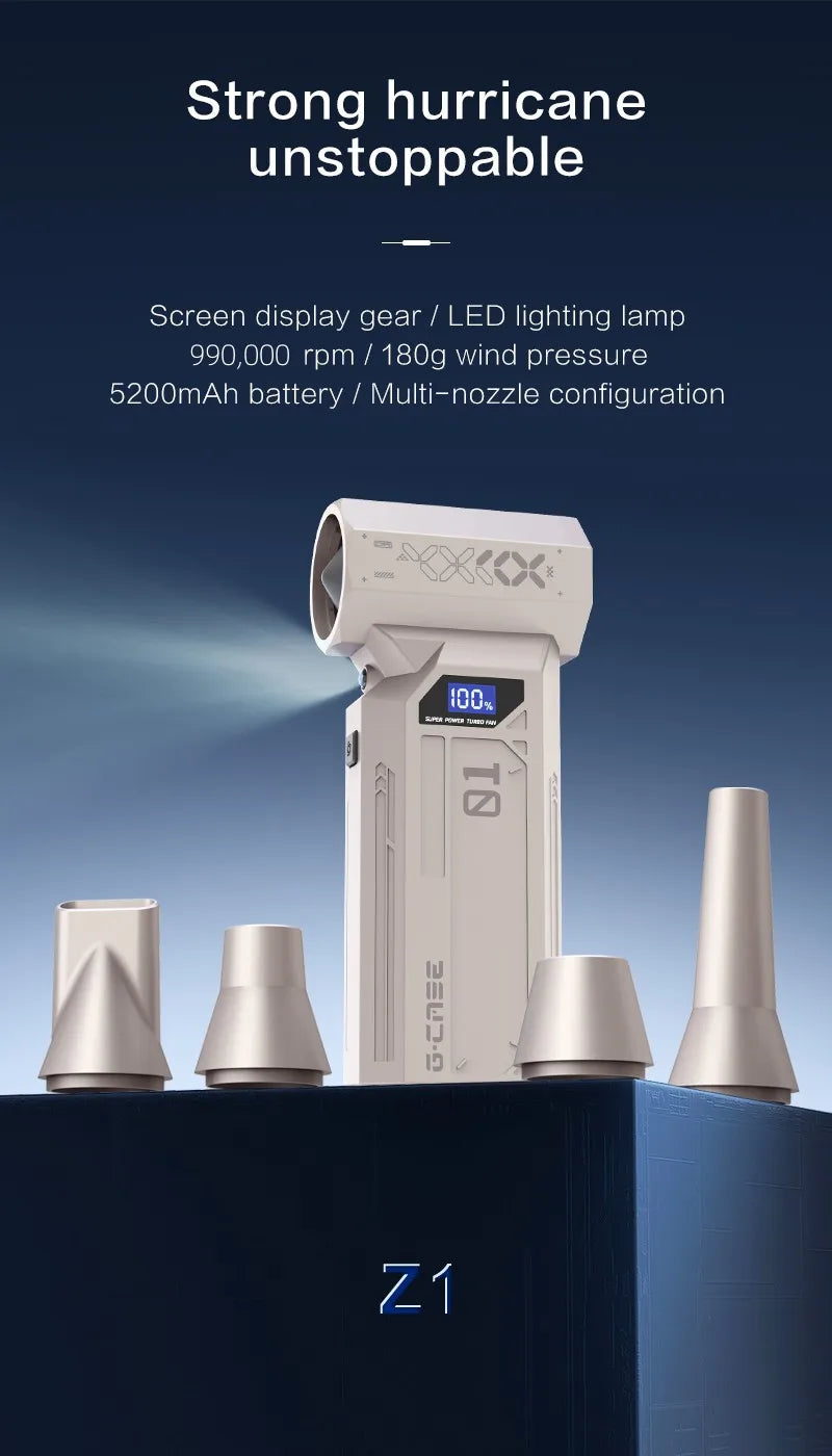Souffleur d’Air Puissant 990000RPM – Turbo Jet Brushless Haute Vitesse, Sans Fil, Compact et Rechargeable Type-C