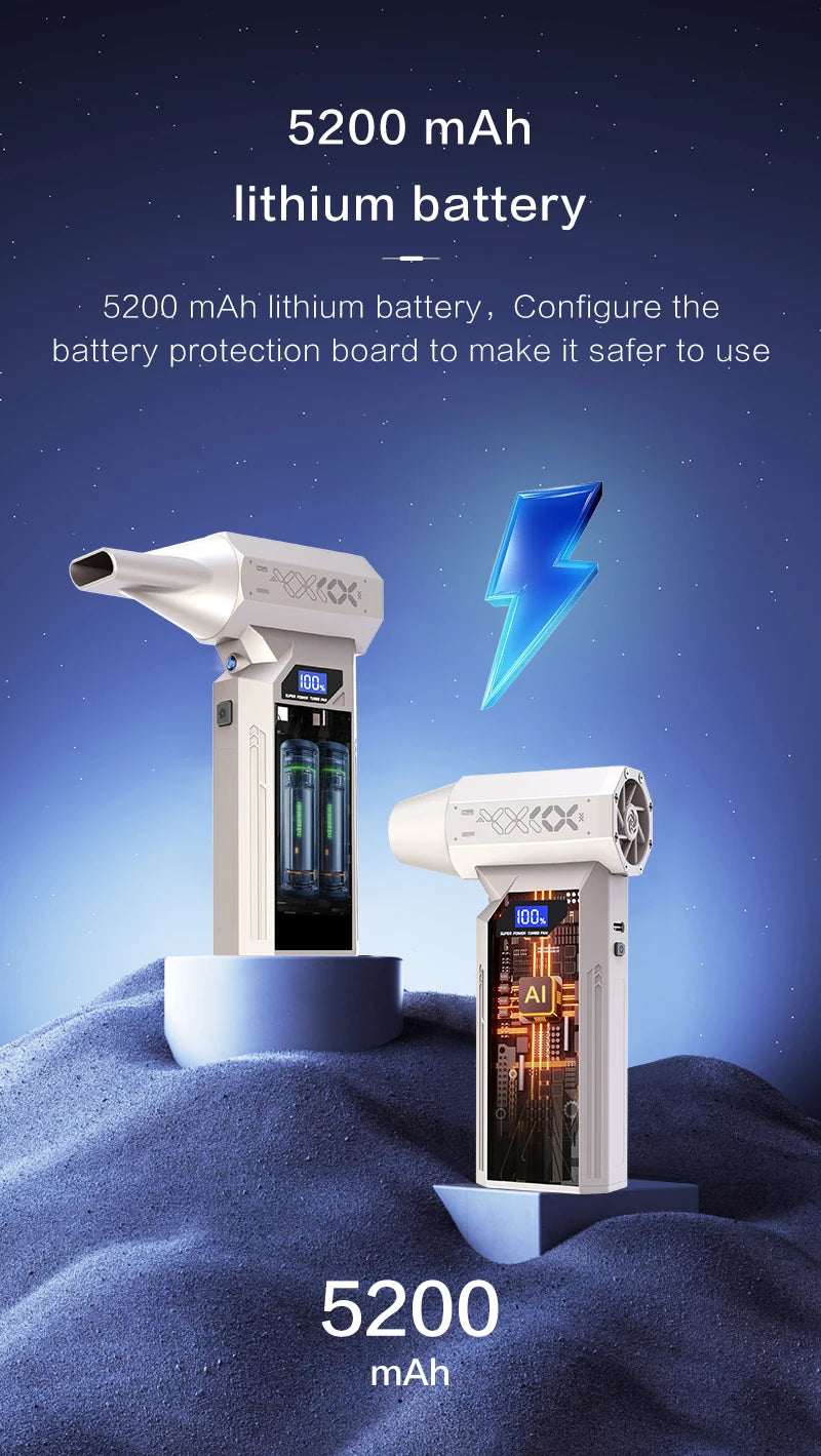 Découvrez le souffleur d’air 990000RPM, un concentré de puissance et de technologie conçu pour le nettoyage professionnel, automobile et domestique. Équipé d’un moteur brushless haute performance, ce souffleur génère un flux d’air intense jusqu’à 52 m/s, idéal pour éliminer efficacement la poussière, le sable, les poils et les débris les plus tenaces.