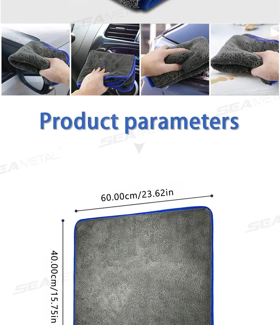 Chiffon Microfibre SEAMETAL 1200GSM Épais – Serviette de Lavage et Séchage Voiture Ultra Absorbante, Douce et Anti-Rayures