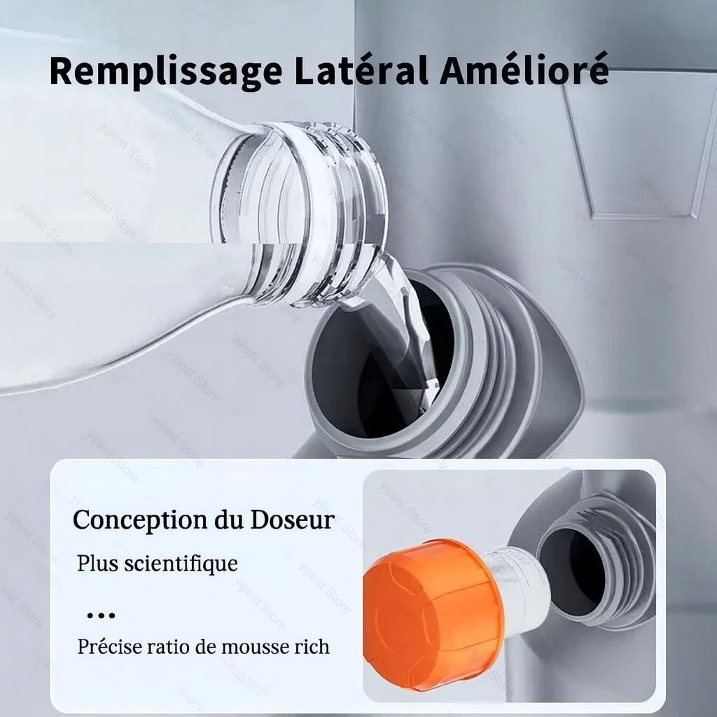 - Diffusion fine pour une mousse riche et homogène avec moins de savon.