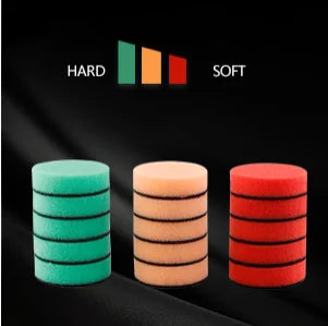 Three kinds of cutting available. Green for heavy cut, orange for medium cut, red for light cut. Each color has 1, 2 and 3 inch size. What's more, micofiber pads and wool pads are also included in the polisher set.